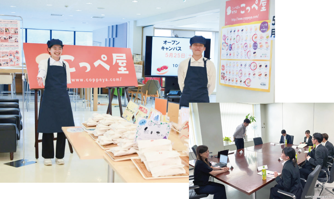 「札幌大学インターンシッププログラム」は、独自のインターンシップなどに関する取り組みの総称です。民間企業でのインターンシップはもちろん、自治体での就業体験や、学内でのキャリアイベントの運営スタッフなど、さまざまな取り組みを導入から振り返りまで一元化。就業意欲の向上、主体的な行動力、ビジネスマナーなどを身につけられます。