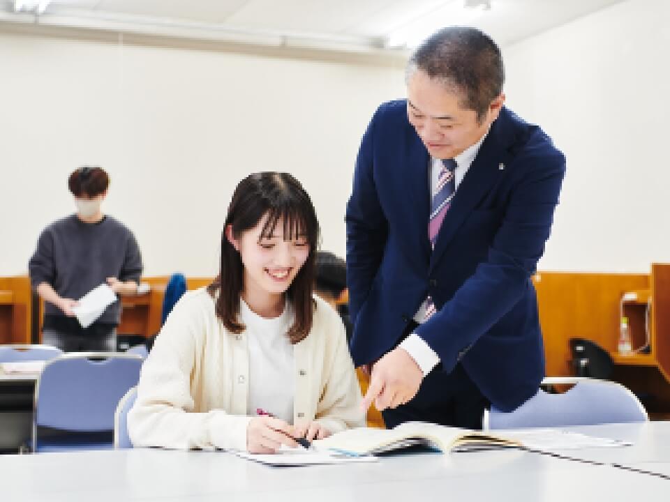 学生のキャリアアップと資格取得合格へのサポートを行うため、専門学校と連携し、さまざまな資格取得講座や公務員受験対策講座を開講しています。学内にいながら外部のプロ講師によるレベルの高い講義が受講でき、これまで多くの合格者を輩出しています。