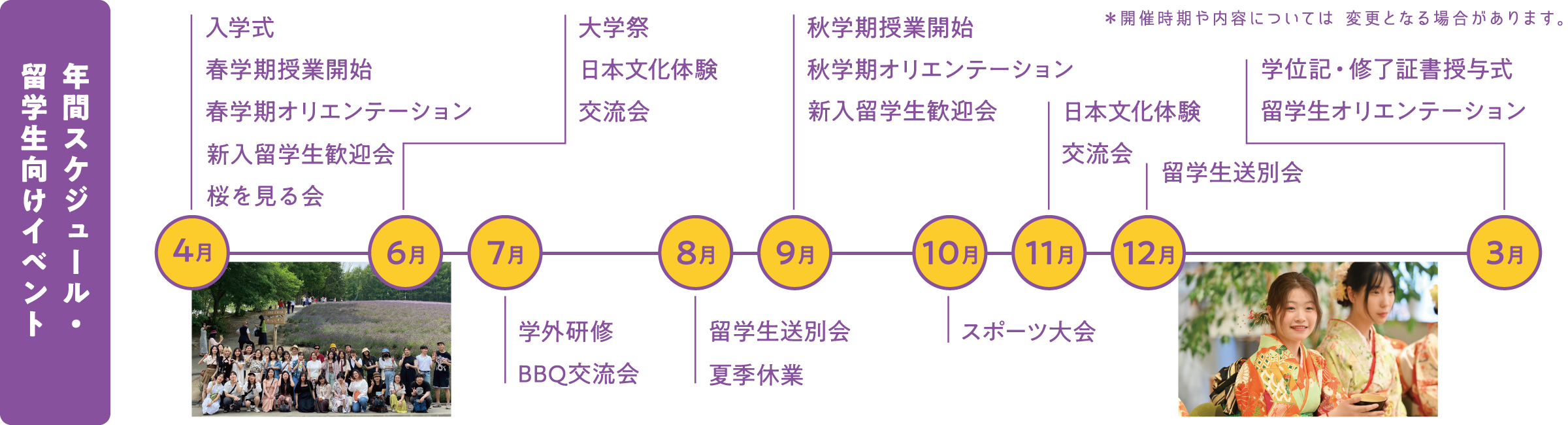 年間を通して、留学生のためのイベントや交流の場が盛りだくさん。
