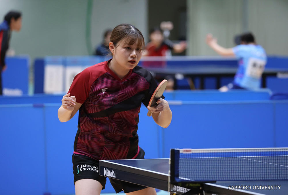 本大会は先日開催された「第91回全日本大学総合卓球選手権大会(個人の部)」ランキング入賞者、各学連の推薦選手、強化本部推薦選手、外国人留学生合わせて男女各48名のトップ選手のみが参加し、留学生も含めた大学生日本一を決める大会となり、本学卓球部からは名古屋幸希さん(リベラルアーツ専攻4年 ※4年連続)、松野蘭さん(リベラルアーツ専攻4年)が参加しました。