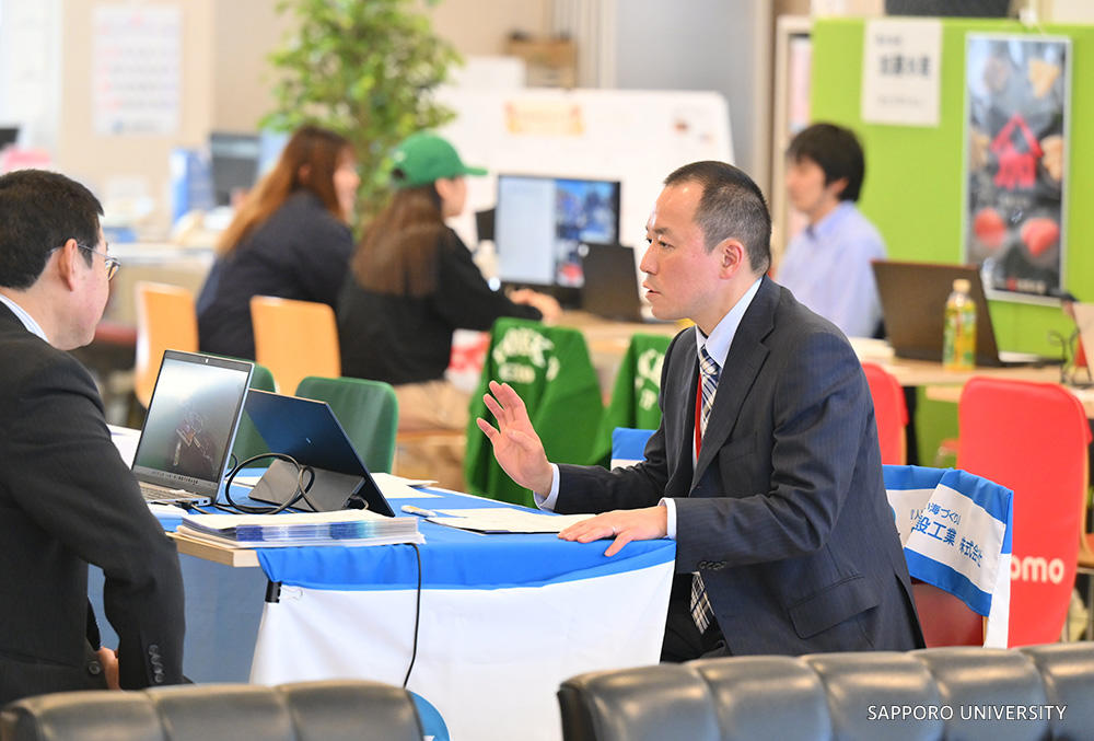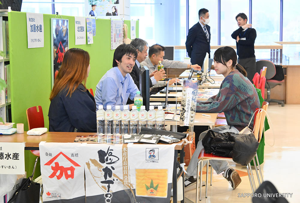 11月5日(水)、2026年3月卒業予定者(大学4年生)及びその他全学生を対象に、令和6年3月に包括連携協定を締結した留萌市と「学内合同企業説明会」を開催しました。