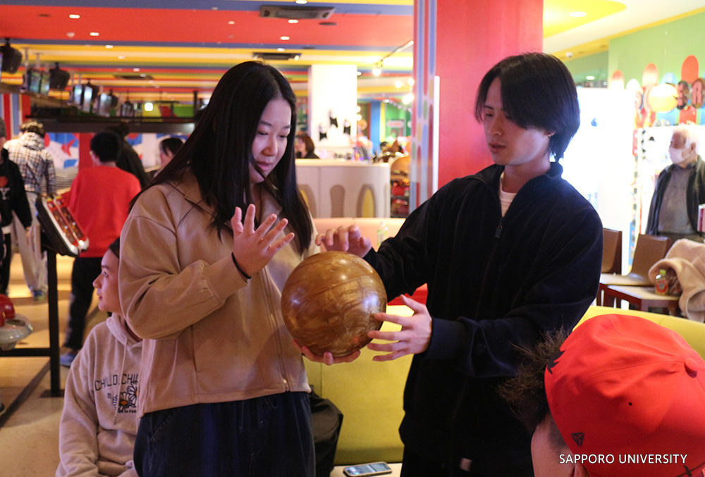 私は今回で3回目の参加でした。そのため参加者とボランティアの両方の立場から「みんなが楽しく始められ、楽しく終われるスポーツ交流会」を大切にして準備を進めてきました。ボウリングの進め具合はそれぞれのグループに委ねて自然な交流や会話が生まれる雰囲気づくりを心掛けました。その結果、外国人留学生と日本人学生が笑顔で交流している姿が見られてうれしかったです。今後も札幌大学での国際交流がさらに深まるよう尽力したいです。