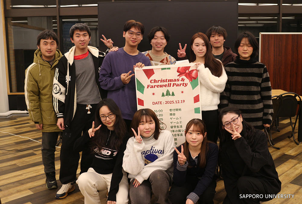 令和7年12月19日(金)、札幌大学学生立志テラスS-wingにおいて、外国人留学生によるクリスマス会&送別会が行われました。