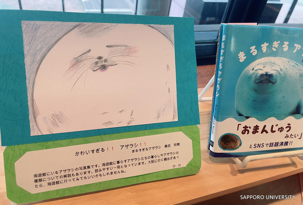 今回は、学生4名が参加し、書店内の様々なコーナーから、友人たちや先輩、後輩、将来の札大生にすすめたい本を吟味し、52冊を選びました。選書した本は、翌年度5月頃まで図書館2階の展示スペースで展示、貸出を行っています。